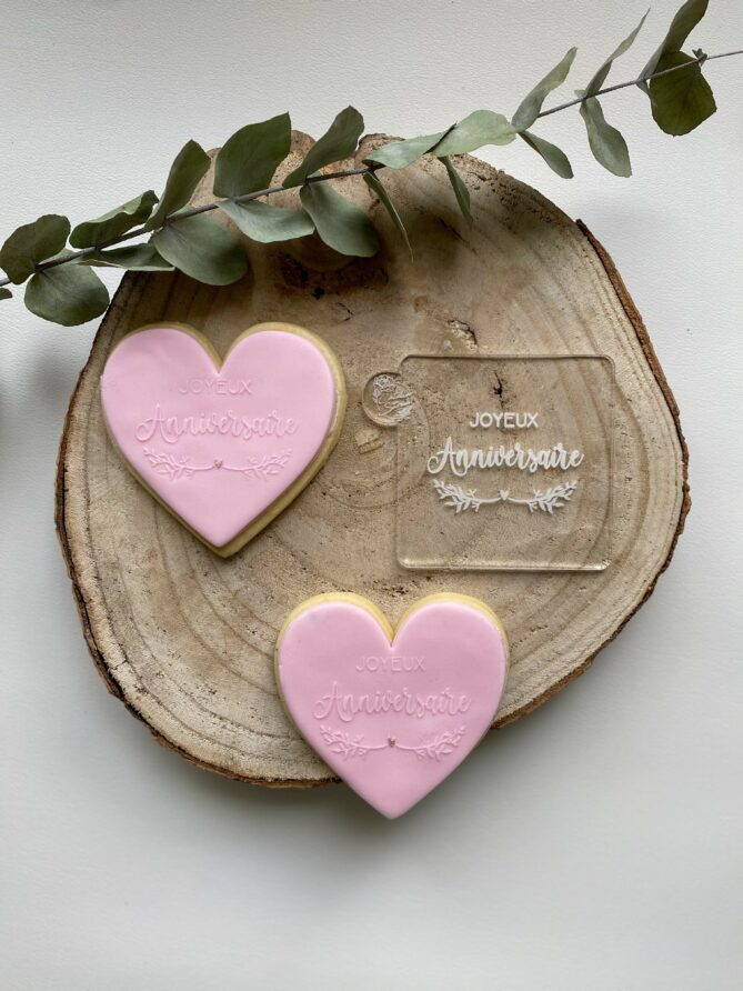 Tampon biscuit – Anniversaire – Joyeux anniversaire branches et coeur