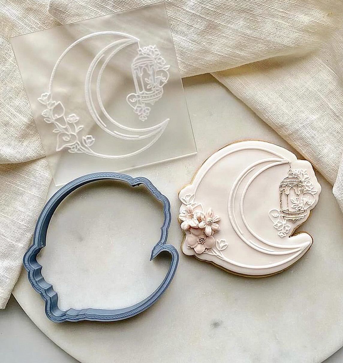 Tampon biscuit – Eïd – Set Tampon – Lune fleuri + Emporte-pièce