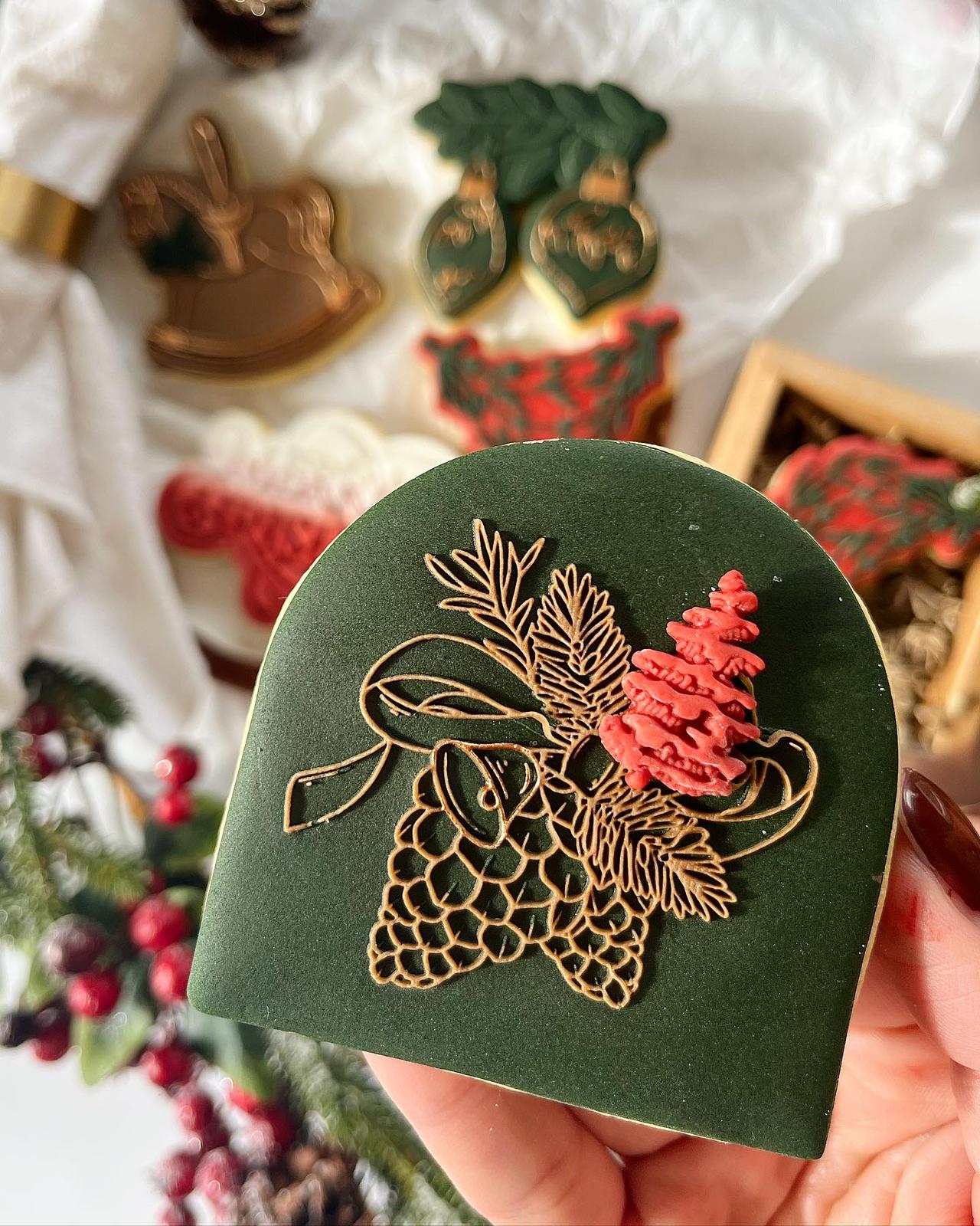 Tampon biscuit – Noël – Cloche et pommes de pin