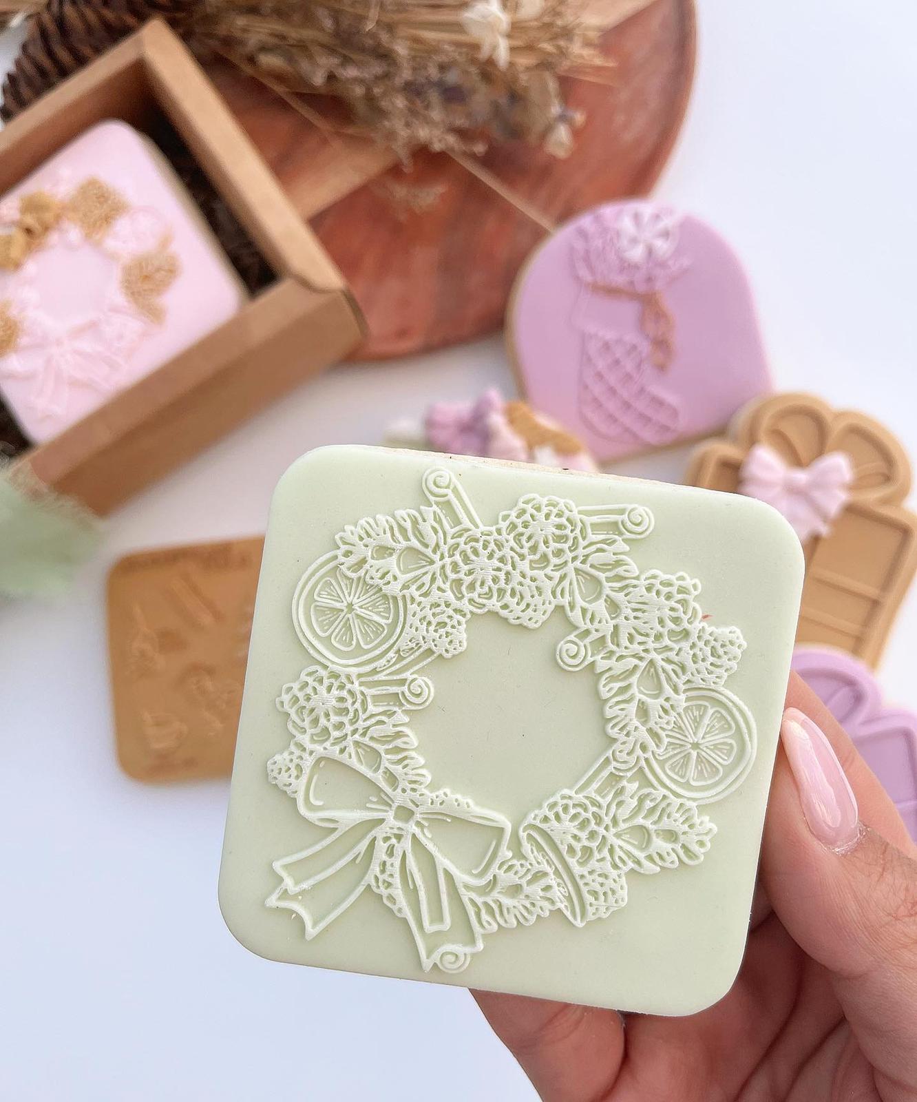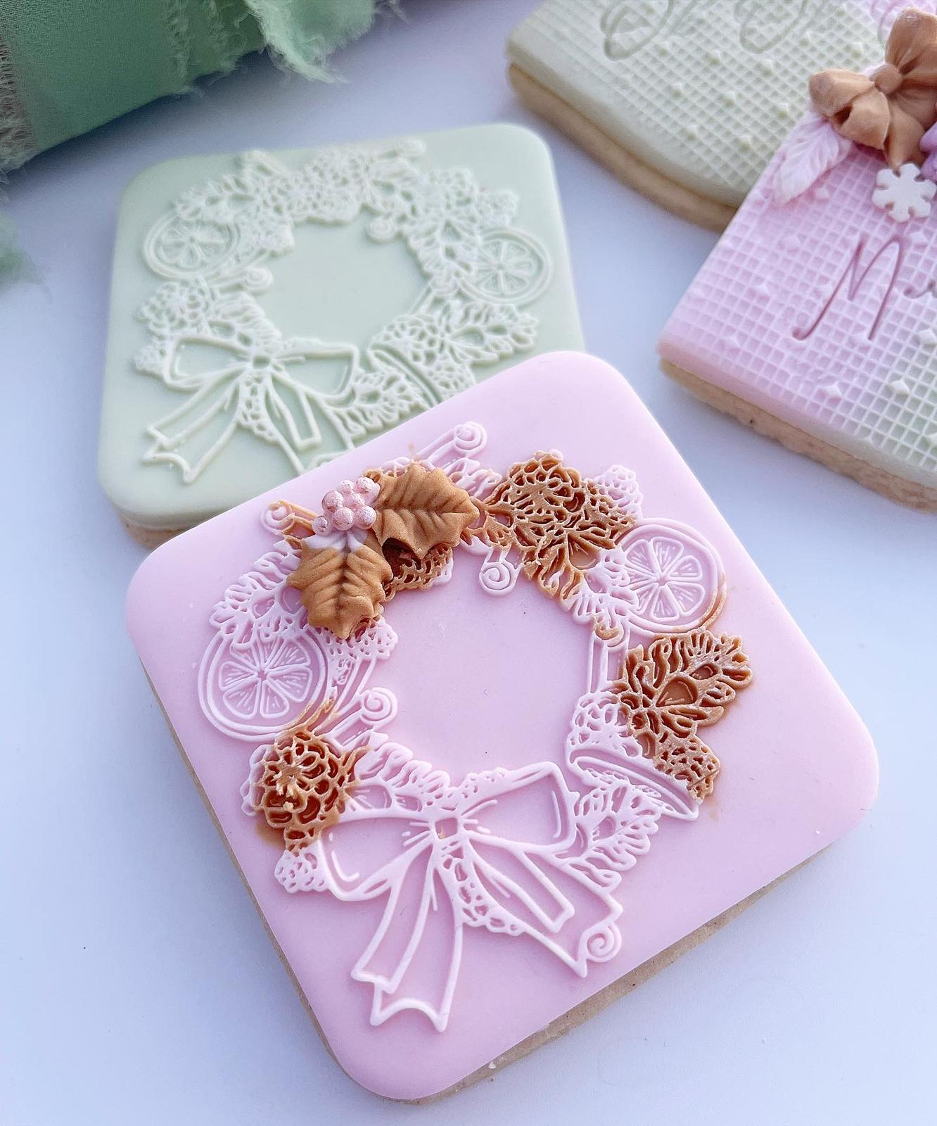 Tampon biscuit – Noël – Couronne de Noël cannelle