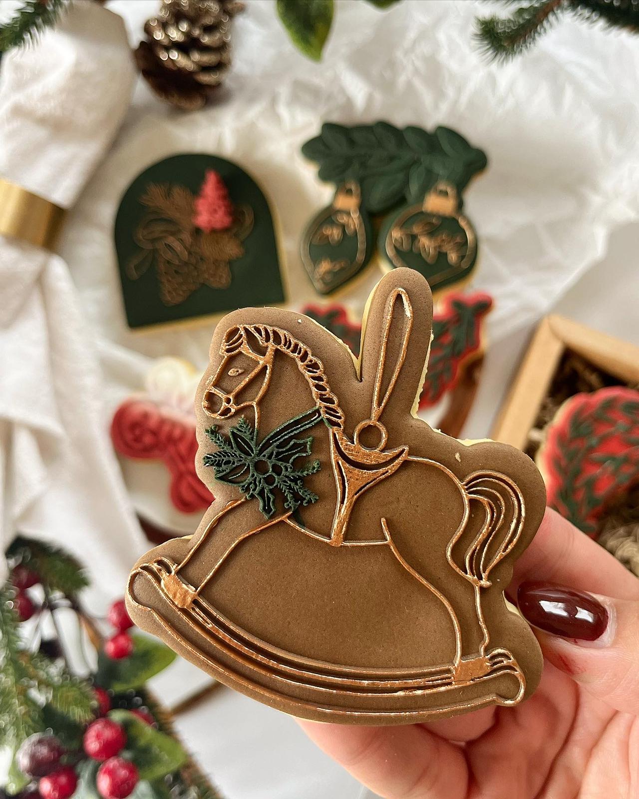 Tampon biscuit – Noël – Set Tampon – Cheval à bascule + Emporte-pièce