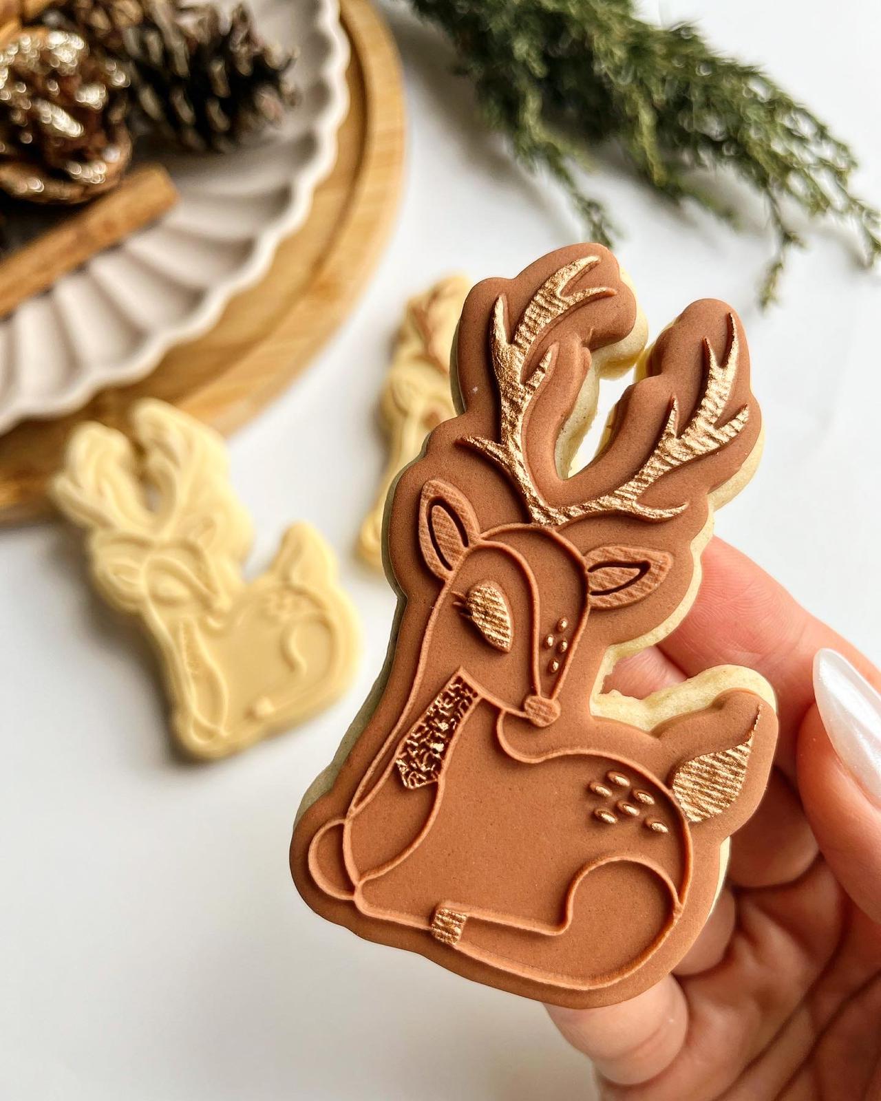 Tampon biscuit – Noël – Set Tampon – Renne + Emporte-pièce